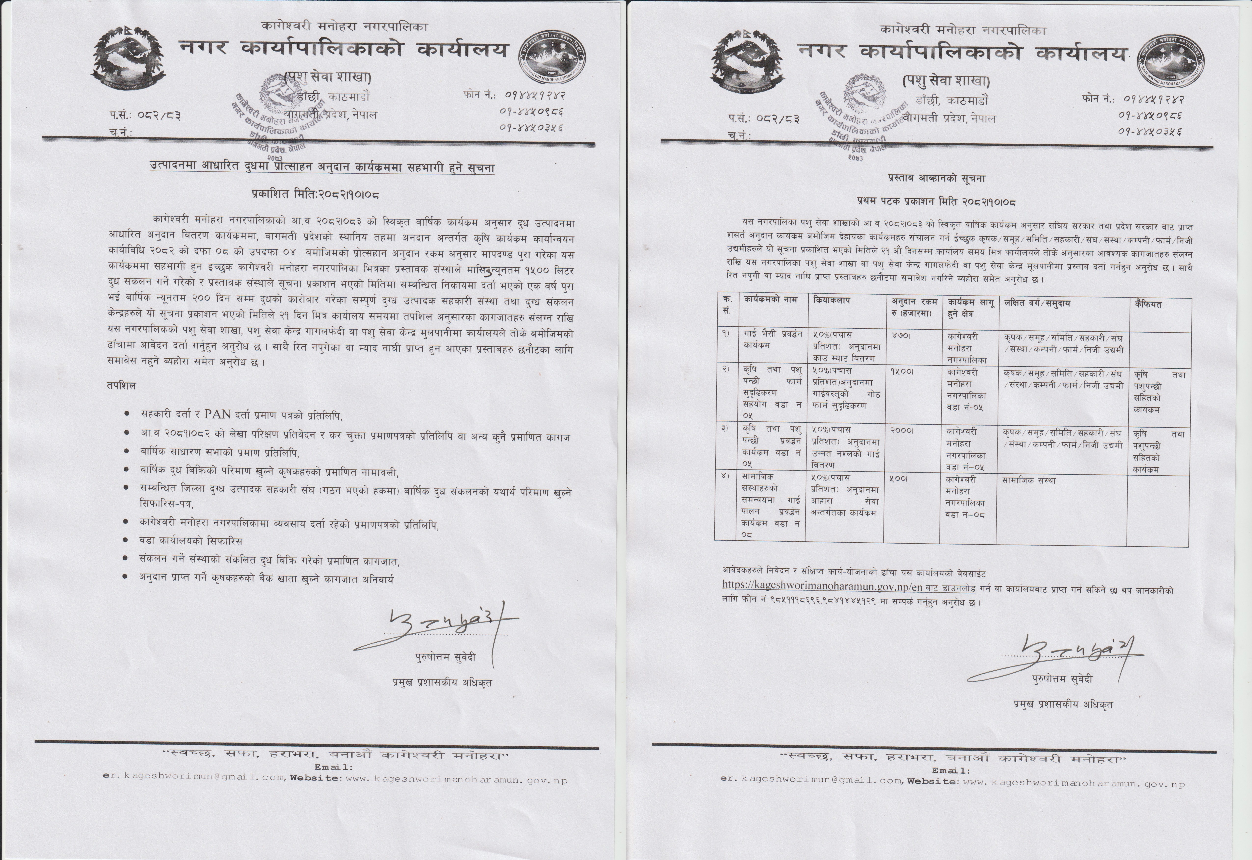 पशु सेवा शाखाको सूचना (निवेदनको ढाँचा सहित)