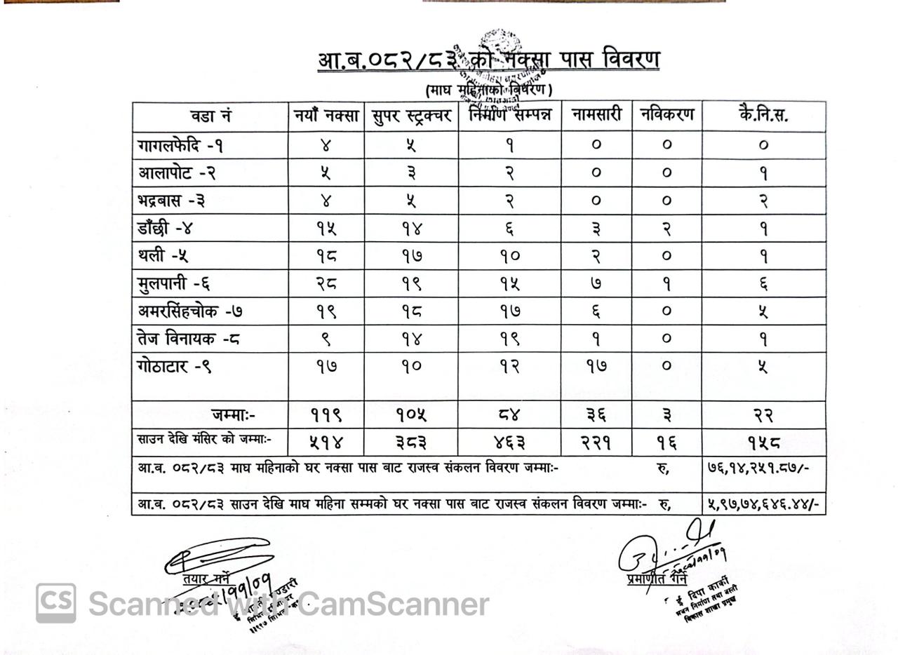 आ.व. २०८२/८३, माघ महिनाको नक्सा पास विवरण।